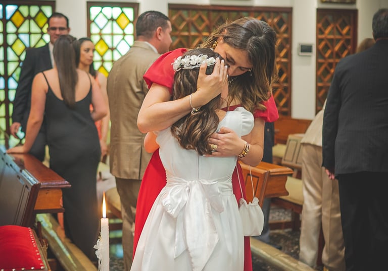 Capturamos la ceremonia en iglesia y momentos con padrinos y seres queridos.